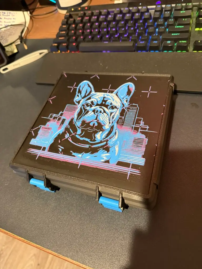 In case you don’t want just a “Plain Jane” case, you can add some flare to your storage solution! We offer several different colors and filament types as well as options to add a custom logo/image to the top of your box! Check out our Filaments* page to see all of the possibilities!